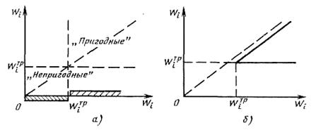 В этом случае все альтернативы каждого класса эквивалентны, то есть в первом классе находятся все одинаково пригодные, во втором — все одинаково непригодные. Отношение эквивалентности R задается указанием общего свойства: «быть пригодным». Использование дополнительной информации о предпочтении, например, «Wi не менее предпочтительнее (важнее) Wj»,позволяет на выделенном классе пригодных альтернатив построить квазипорядок, который в данном случае оказывается несвязным (рис. 2.2). Если от ЛПР была бы получена информация типа: «Wi строго предпочтительнее Wj»и при этом она касалась бы любой пары альтернатив, то полученное на основе этой информации отношение было бы строгим частичным порядком, который обладает свойством антисимметричности (значения показателей — действительные числа). Для каждого из показателей Wiотношения эквивалентности и строгого частичного порядка показаны на рис. 2.3.