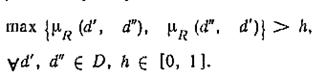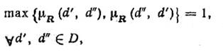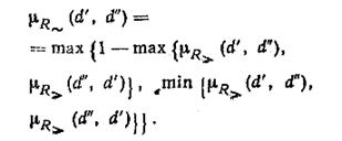 Помимо отношения безразличия, которое транзитивно, симметрично и рефлексивно, вводится нечеткое отношение квазиэквивалентности R# с функцией принадлежности µR# (d', d") = min {µR≥ (d', d"), µR≥ (d",d')}.
