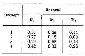 (0,57 + 0,77 + 0,29 + 0,42) = 0,51 для Wl, 0,34 для W1 и 0,15 для W3. Взвешенные суммы относительных балльных оценок экспертов составляют для первого эксперта 0,57 X 0,51 + 0,29 X 0,34 + 0,14 X 0,15 = 0,41; для второго эксперта 0,45; для третьего 0,31; для четвертого 0,36. Сумма полученных взвешенных суммарных оценок определится величиной 0,41 + 0,45 + 0,31 + 0,36 = 1,53, а уточненные коэффициенты у компетентности экспертов будут равны: 0,41: 1,53 = = 0,26 — для первого; 0,3 — для второго; 0,2 — для третьего и 0,24 — для четвертого.