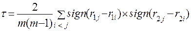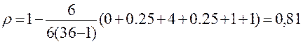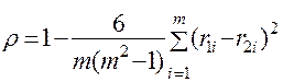 где m − число элементов; r1i – ранг,приписанный первым экспертом i −му элементу; r2i – то же, вторым экспертом.