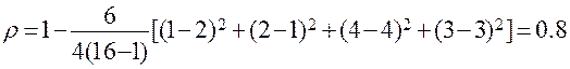При строгом ранжировании используется коэффициент ранговой корреляции р Спирмена: