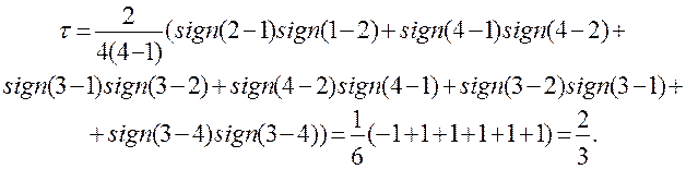 Используя коэффициент ранговой корреляции τ Кендалла, по (2.5) получаем
