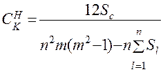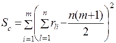 где tk − число одинаковых рангов в k -й группе нестрогих рангов в ранжировке l -го эксперта; Tl — число групп одинаковых рангов в ранжировке l -го эксперта.