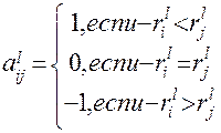 − элементы матрицы попарных сравнений элементов di, dj, i, j = 1, m, построенные по ранжировке l -го эксперта: