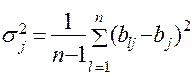Степень согласованности экспертов в этом случае оценивается дисперсиями индивидуальных балльных оценок: