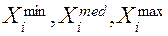 − соответствующая наихудшая, средняя и наилучшая оценки Xi характеристики Xi.