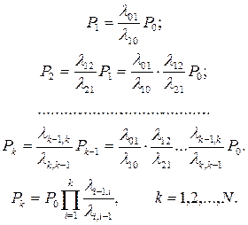Для решения системы уравнений (6.2) – (6.7) выразим все вероятности