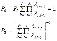 Подставляя в формулы (6.8) и (6.9) значения интенсивностей переходов li,i -1 и li -1, I, для СМО любого типа можно рассчитать вероятности ее состояний и определить показатели эффективности.