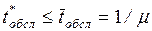 – среднее время от момента начала обслуживания до момента окончания обслуживания (