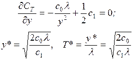 Подставляя у* из формулы (7.5) в выражение (7.4), определим минимальные затраты на пополнение и хранение запасов в единицу времени: