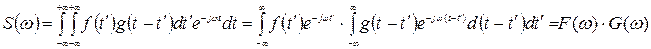 Как и следовало ожидать, спектр произведения представляет собой свертку спектров.