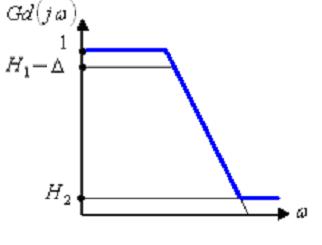 Отклонение реальной АЧХ фильтра от желаемой в полосе пропускания называют неравномерностью АЧХ. Закон изменения в переходной области обычно не задается, а коэффициент передачи в полосе пропускания равен 1.