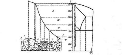 Рис 7.3. Схема строения сварного шва и зоны термического влияния