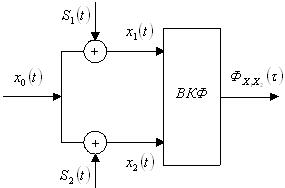 Рассмотрим такую схему. Движущуюся среда просвечивается и ведется наблюдение двумя фотодетекторами, которые помещены один за другим в направлении движения среды. Среда неоднородна, поэтому оба детектора через определенный промежуток времени наблюдают примерно одну и ту же ситуацию и выдают сигналы