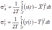 Для непрерывных сигналов x(t) и y(t) можно записать среднее значение и дисперсию