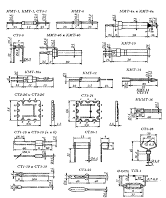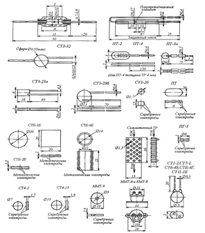 На рис. 6.3 приведены конструкции стержневых, бусинковых, дисковых, пластинчатых и трубчатых терморезисторов.