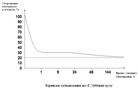 Закон Эббингауза: забывание материала после его предварительного заучивания происходит неравномерно. Быстрее всего этот процесс идет в течение первых часов и дней после запоминания: