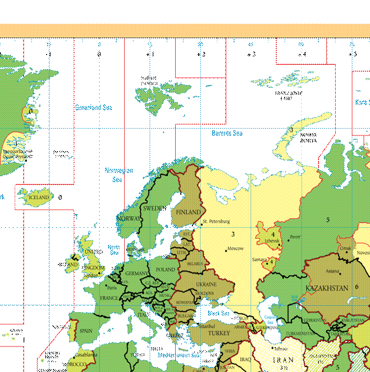 КАРТА ЧАСОВИХ ПОЯСОВ (ЕВРОПА)