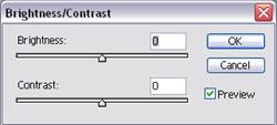 Часто редактирование изображения сводится к выполнению только его тоновой коррекции. Например, полученное после сканирования изображение оказалось слишком темным или исходная фотография была слишком контрастной. В этом случае для коррекции всего изображения лучше воспользоваться окном диалога Яркость/Контрастность (Brightness-Contrast) (рис.2.3).