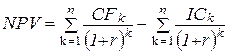 При осуществлении инвестиционных затрат в несколько этапов NPV рассчитывается по формуле: