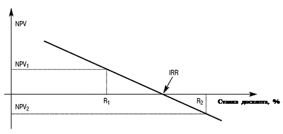 где r1 — ставка дисконта, при которой значение NPV положительно;