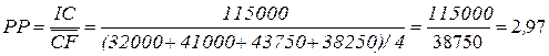 Простой период окупаемости, определяемый статичным методом, - PP, рассчитывается по следующей формуле:
