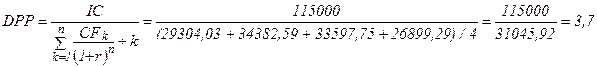 Соответственно дисконтированный период окупаемости инвестиций при единоразовых инвестициях определяется по следующей формуле: