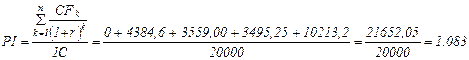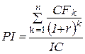 PI при единоразовых инвестициях определяется по следующей формуле: