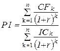для нескольких альтернативных проектов: принимается тот проект, где PI →max.