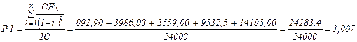 , где IC - сумма инвестиционных затрат на реализацию проекта;