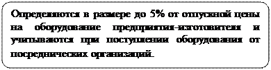 - Другие затраты, относимые в стоимость оборудования (шефмонтаж, доизготовление и т.д.).