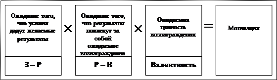 Уровень приложенных усилий будет определяться ценностью вознаграждения. Более того, устанавливается соотношение между вознаграждением и результатами, т.е. человек удовлетворяет свои потребности посредством. вознаграждений за достигнутые результаты.