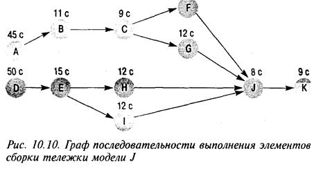 1. Начертите граф последовательности выполнения элементов сборки тележки. Граф, представленный на рис. 10.10 иллюстрирует последовательность выполнения элементов, за данных в табл. 10.1.