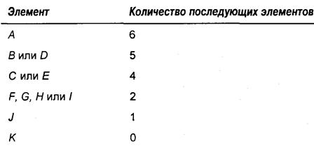 4. Выберите правило, которым следует руководствоваться при определении состава операции на каждом рабочем месте. Практика показывает, что правило нужно выбирать отдельно в каждом конкретном случае. В общем случае при определении состава операций из всей группы элементов вначале можно последовательно извлекать элементы с наибольшим количеством последующих элементов, ранжируя их по мере убывания числа последующих элементов (пусть это будет правилом "а"). Затем в цепочках с заданной последовательностью выполнения элементов среди ближайших последующих элементов выбирают наиболее продолжительные элементы (правило "b"), так как именно они ограничивают возможность достижения баланса. В нашем примере мы используем в качестве исходного правило "а". Ниже представлены все элементы, проранжированные по мере убывания числа последующих элементов.