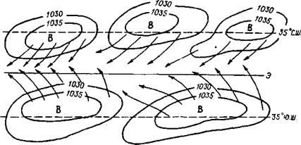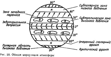 В настоящее время установлено, что причиной устойчивых, сохраняющихся особенностей общей циркуляции атмосферы является зональность в распределении давления (§ 8) и связанная с ней циклоническая деятельность на планете.