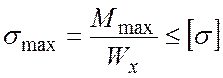 При изгибе допускаемая нагрузка определяется по допускаемому моменту в опасном сечении: