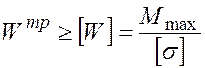 2.проектный расчет, который определяет размеры конструкции, необходимые для того, чтобы она выдержала действующую на нее нагрузку. Он сводится к сравнению требуемых геометрических характеристик поперечного сечения с допускаемыми. При изгибе условие прочности в этом случае запишется в виде: