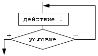Исполнение цикла начинается с выполнения действия. Таким образом, тело цикла будет реализовано хотя бы один раз. После этого происходит проверка условия. Поэтому цикл "до" называют циклом с постусловием. Если условие не выполняется, то происходит возврат к выполнению действий. Если условие истинно, то осуществляется выход из цикла. Таким образом, условие цикла "до" - это условие выхода. Для предотвращения зацикливания необходимо предусмотреть действия, приводящие к истинности условия.