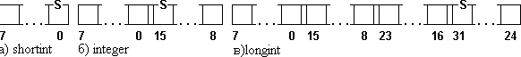 Формат машинного представления чисел типа LONGINT приведен на рис 2.3. в). Например, представление чисел в формате longint: