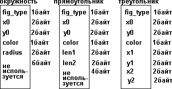 Поле с именем fig_type введено для представления идентификатора вида фигуры, который, например, может кодироваться символами: "C"- окружность или "R"- прямоу-гольник, или "T"- треугольник.