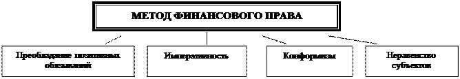 Основной Метод правового регулирования Финансового Права – метод властных предписаний, не основывающийся (как правило) на отношениях субординации (подчинения по вертикали).
