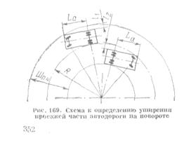 | Уширение проезжей части, м | 2,1 | 1,7 | 1,4 | 1,1 | 0,8 | 0,5 | 0,3 |