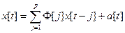 В основу модели АР положена корреляция отсчета случайного процесса в текущий момент времени с некоторым конечным или бесконечным числом отсчетов в предыдущие моменты времени. Корреляционные связи позволяют осуществить регрессию текущего отсчета на предшествующие отсчеты. Такой вид регрессии называется авторегрессией. В уравнении АР текущий отсчет представляется взвешенной суммой предыдущих с некоторыми коэффициентами веса