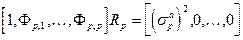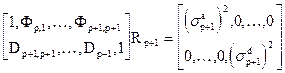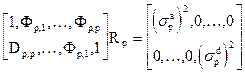 -квадрат СКО, равный дисперсии ошибки прямого предсказания, Rp - корреляционная матрица (p+1) –го порядка