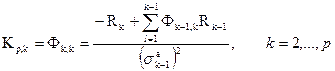 - коэффициенты фильтра обратного предсказания, состоящего из р звеньев,