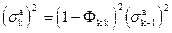 - дисперсия ошибки обратного предсказания на выходе p-го звена фильтра обратного предсказания. Объединив матричные уравнения (27) и (29) можно записать общее уравнение