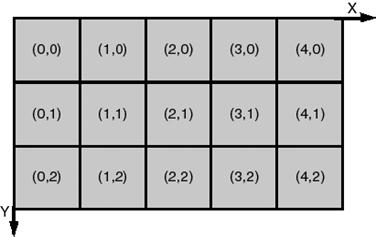 Элементы растра мы будем называть пикселами (англ. pixel - от pic ture el ement) и обозначать Mij =F(i,j). Пиксел может иметь различные атрибуты, но при рассмотрении задач растеризации простейших геометрических объектов будем считать, что у него есть только два состояния: 1 - видимый и 0 - невидимый.