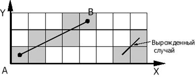 Рис. 6. Рисование отрезка с нецелочисленными координатами концов.