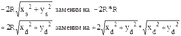 (xs)2 + (ys)2 +(xd)2 + (yd)2 - 2*R2 < 0