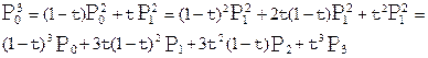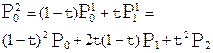 Обозначим опорные точки как , , начало кривой положим в точке (t=0), а конец в точке (t=1), для каждого найдем точку